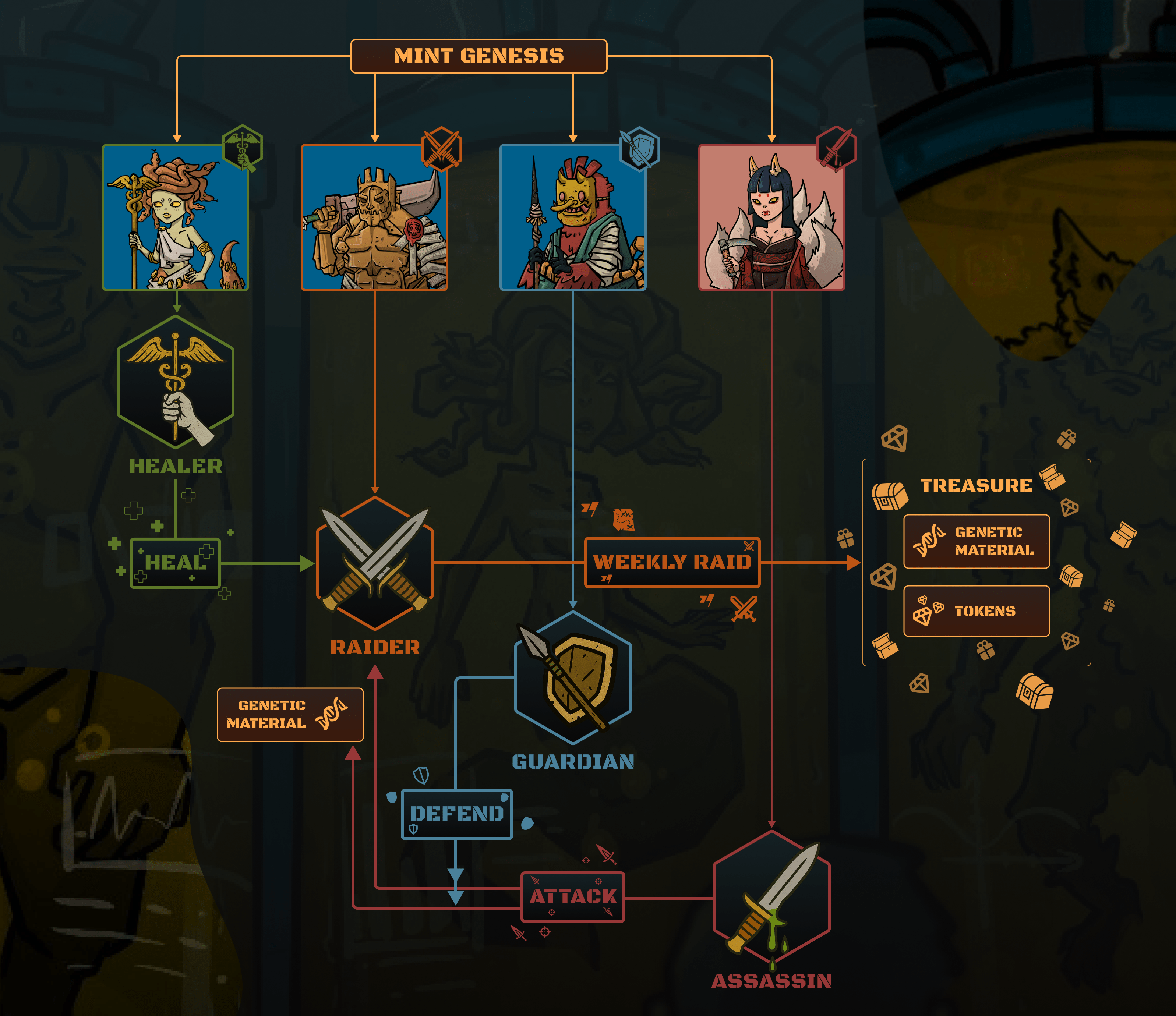 With MYTHS & MONSTERS, holders build an army like a Pokémon deck or a player's Clan / Unit List in Final Fantasy Tactics. For collectors the art, traits, and story itself is rewarding. For players the traits equate to game properties and the experience will be unique, enjoyable, and shaped by them; full of creative and onchain rewards. For traders, the Raids become soft-staking with yield, and the free Clone mints that this Genesis collection emits / creates will deliver real ROI value.